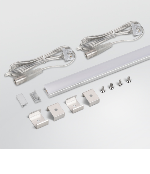 Серия ARL-KIT представляет собой готовые наборы для светодиодной подсветки шкафов, полок, кухонных зон, ниш и мебели. Главным преимуществом является удобство сборки: светодиодная лента уже установлена в алюминиевом профиле, а в комплекте присутствуют все необходимые комплектующие - заглушки с разъёмом питания 5.5 DC Female, глухие заглушки и крепления.