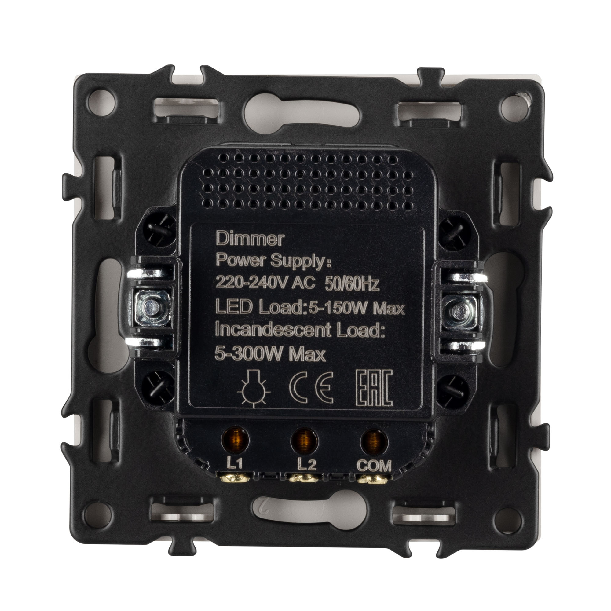 Строгие геометрические линии гармонично сочетаются с функциональностью продуманных механизмов, создавая идеальное решение для дизайн-проектов, где важны эстетика и практичность. Светорегулятор совместим с рамками серии NOBE, создавая утонченный минималистичный вид. Скрытый тип монтажа позволяет гармонично встроить в интерьер любого современного дизайн-проекта. Видимая часть механизма выполнена из высококачественного пластика цвета белый кварц и имеет Soft-Touch покрытие, что придает изделию приятные тактильные ощущения и стильный внешний вид. Настройка интенсивности освещения осуществляется за счет поворотной ручки (ротора). Она позволяет включать, выключать и регулировать свет и его яркость. Светорегулятор предназначен для управления светодиодными (до 150Вт) или другими источниками света (до 300Вт) с напряжением питания 230В. Суппорт окрашен в черный матовый цвет под основу механизма и выполнен из металла толщиной 1,5мм, что обеспечивает безопасность и уверенность в установке. На каждой стороне суппорта размещены фиксирующие элементы, позволяющие комбинировать механизмы в системы до 5шт как горизонтально, так и вертикально.