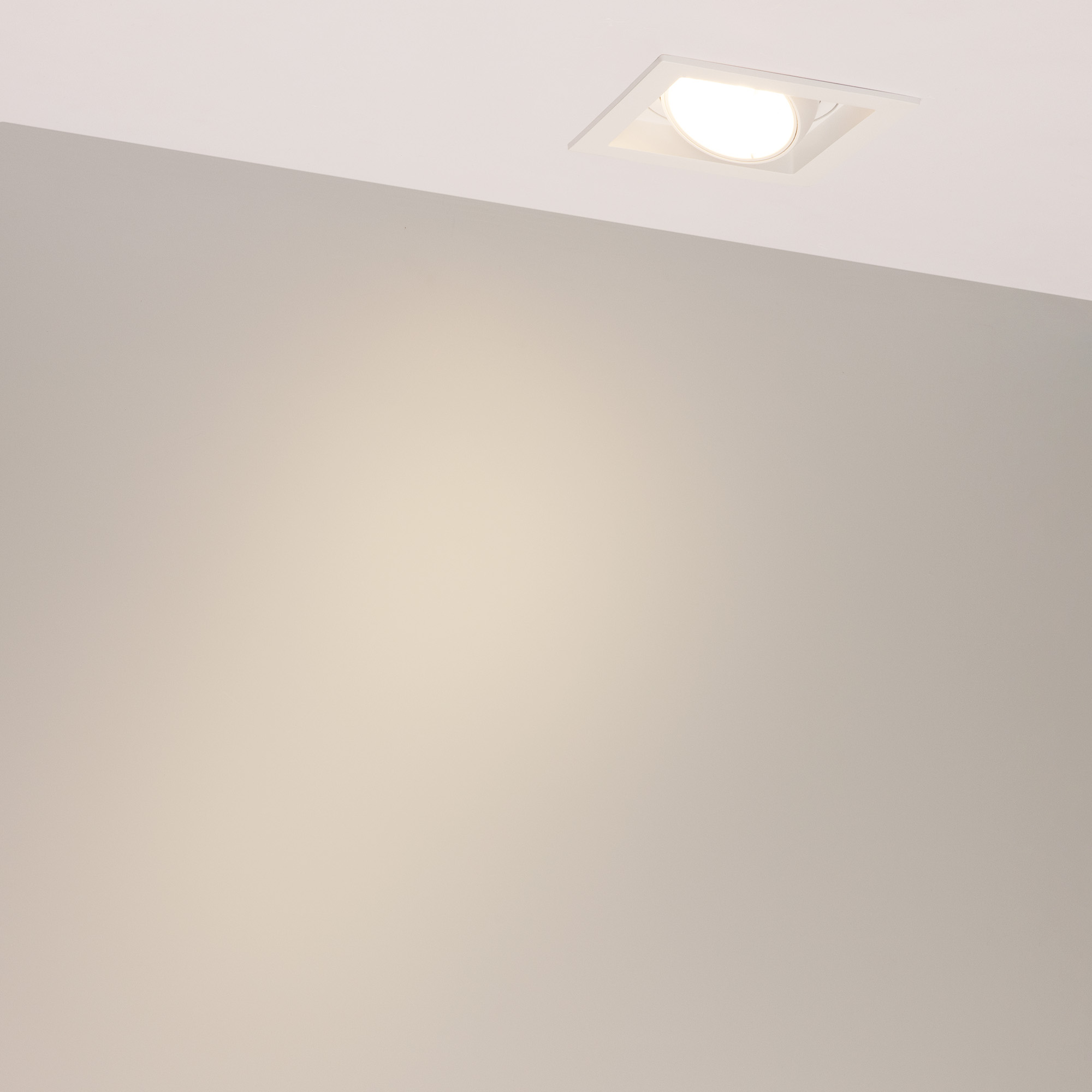Встраиваемый карданный светильник. Мощность 20 Вт, св. поток 2132 лм, 107 лм/Вт, тёплый 3000 K, CRI>92, угол 40°, напряжение питания 230 В. Белый корпус из алюминия, белая вставка, степень защиты IP20. Размер: длина 117 мм, ширина 117 мм, высота 105 мм. Монтаж встраиваемый, установочное отверстие: длина 95 мм, ширина 95 мм. Драйвер 24-42 В, 500 мА, пульсация <2%.