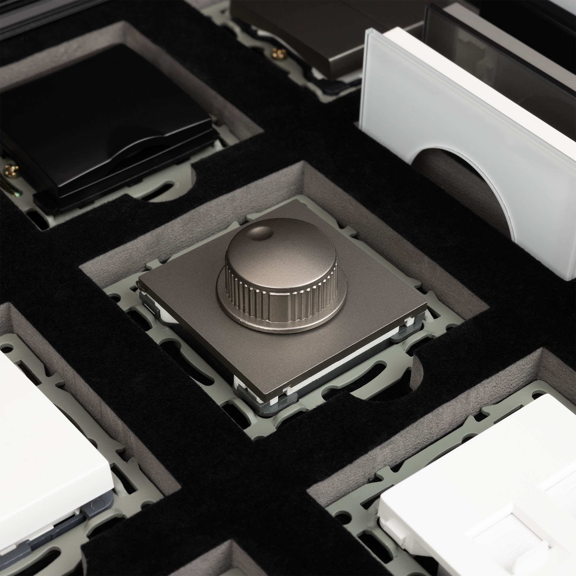Ячейки для размещения: 8 мест под механизмы и 16 мест под однопостовые рамки.