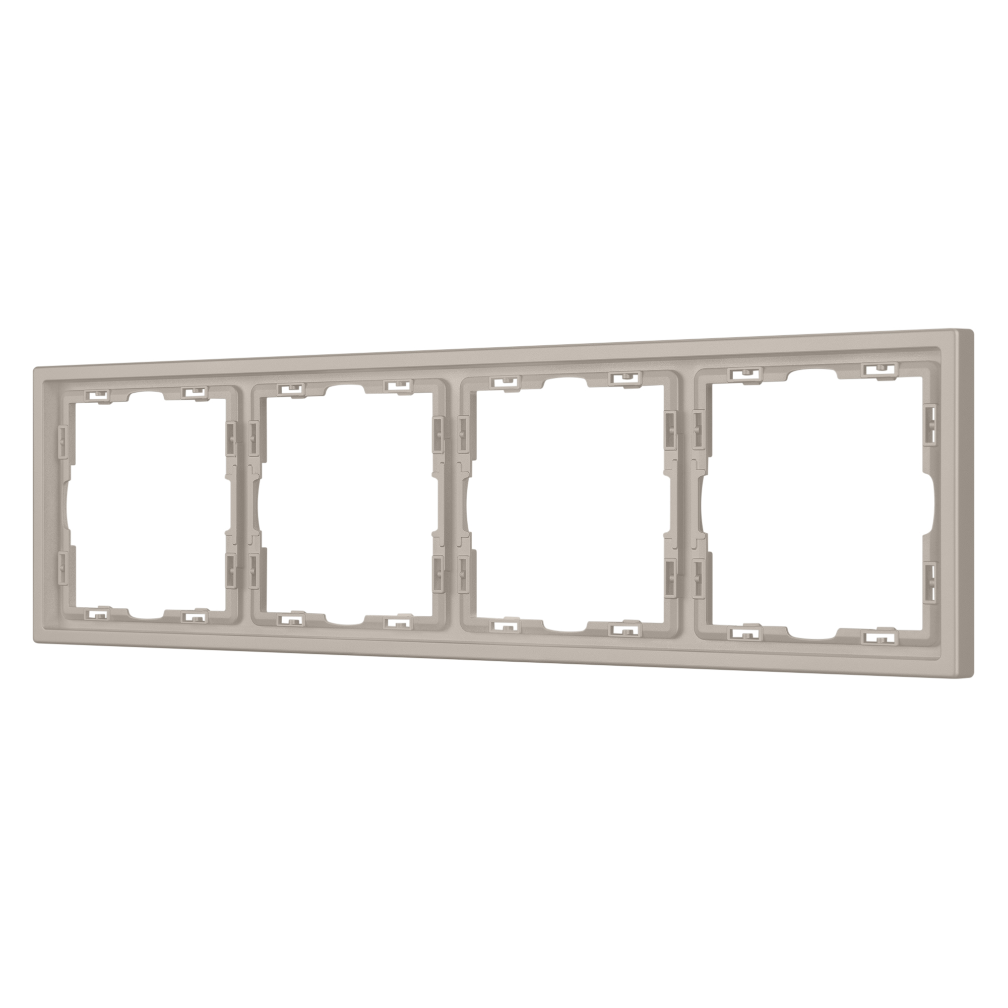 Рамка пластиковая на 4 поста, под встраиваемый механизм. Цвет - кашемир, с Soft-Touch поверхностью. Среднего уровня герметичности IP20. Ориентация монтажа горизонтальная. Габаритные размеры: длина 294 мм, ширина 81 мм, высота 8.55 мм. Гарантийный срок 12 мес.