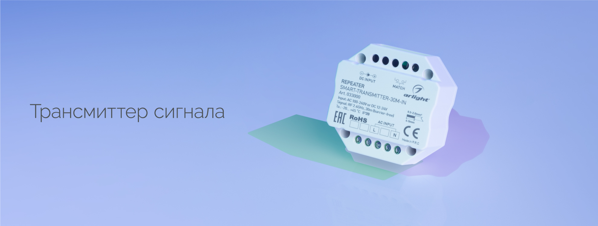 Контроллер-усилитель ARL-SIRIUS-TRANSMITTER-30M-IN (230V, 2.4G) (Arlight, IP20 Пластик, 3 года)
