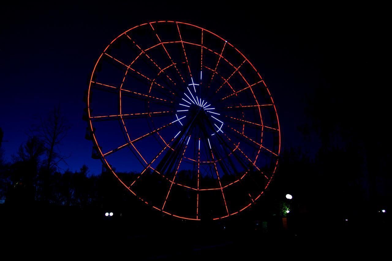 Создание системы динамической светодиодной подсветки колеса обозрения в парке Кырлай города Казань.