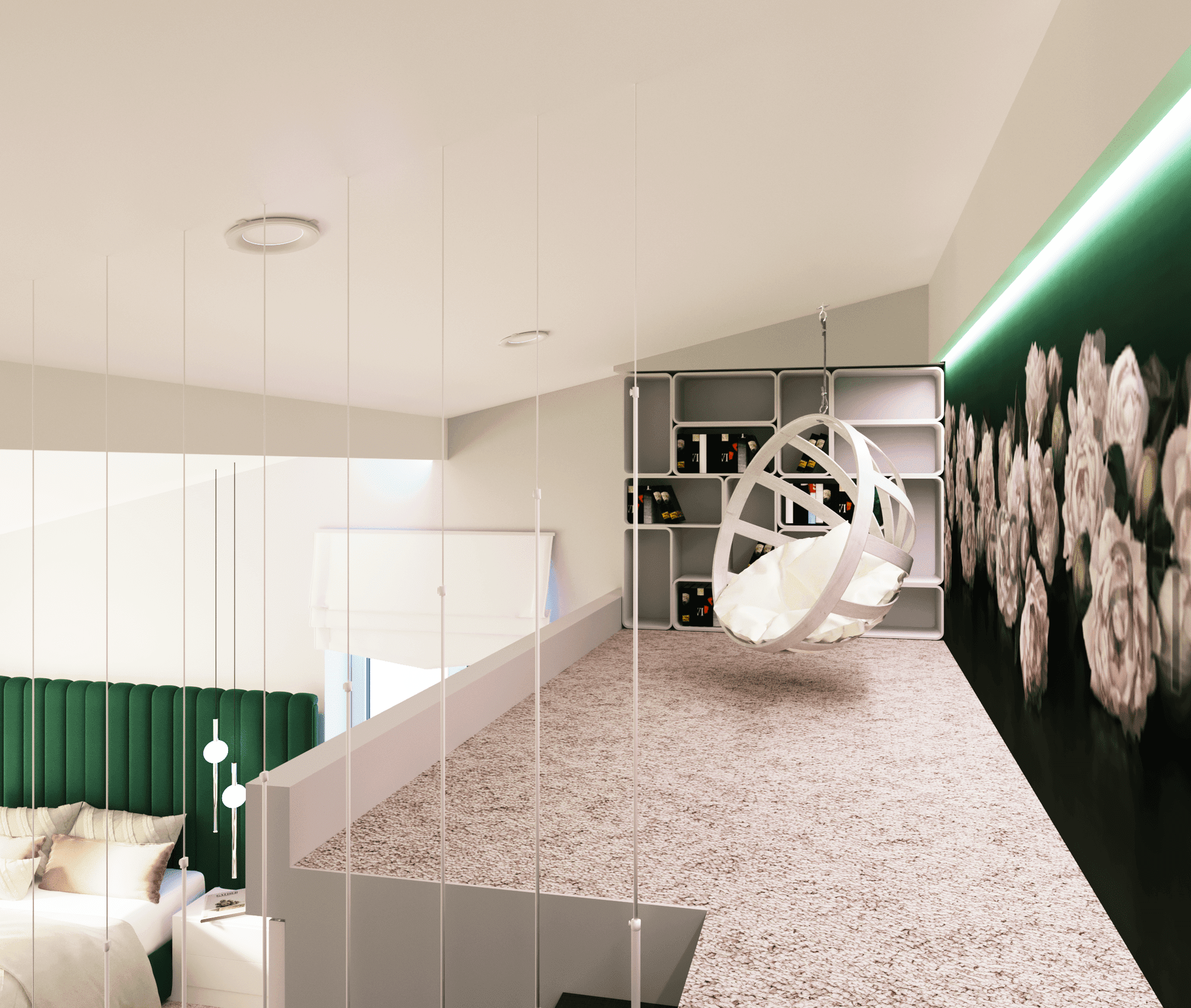 В проекте применялись анодированные профили с экраном и светодиодные ленты дневного белого свечения. Тонкие световые линии гармонично интегрированы в различные помещения. Другая часть основного освещения создана с помощью больших потолочных светильников, которые выразительно контрастируют с простыми линейными светильниками.